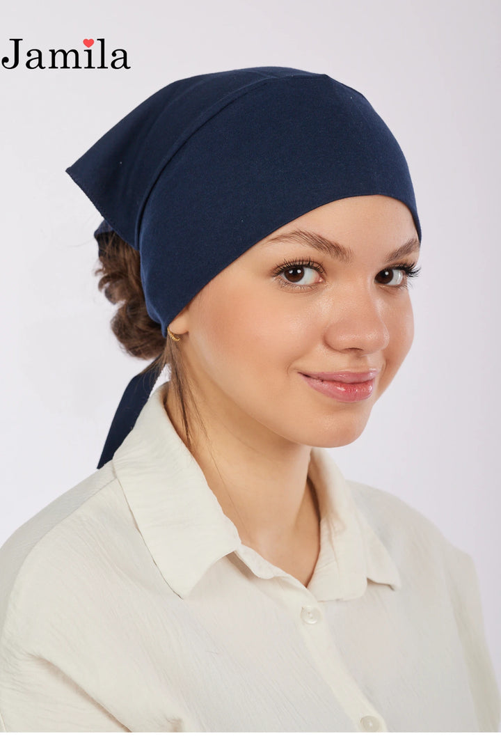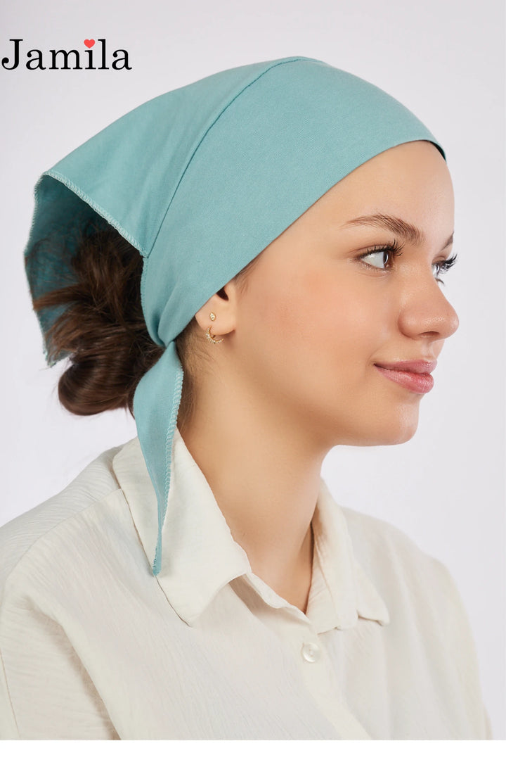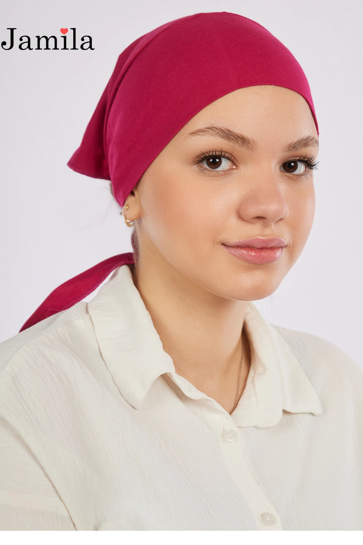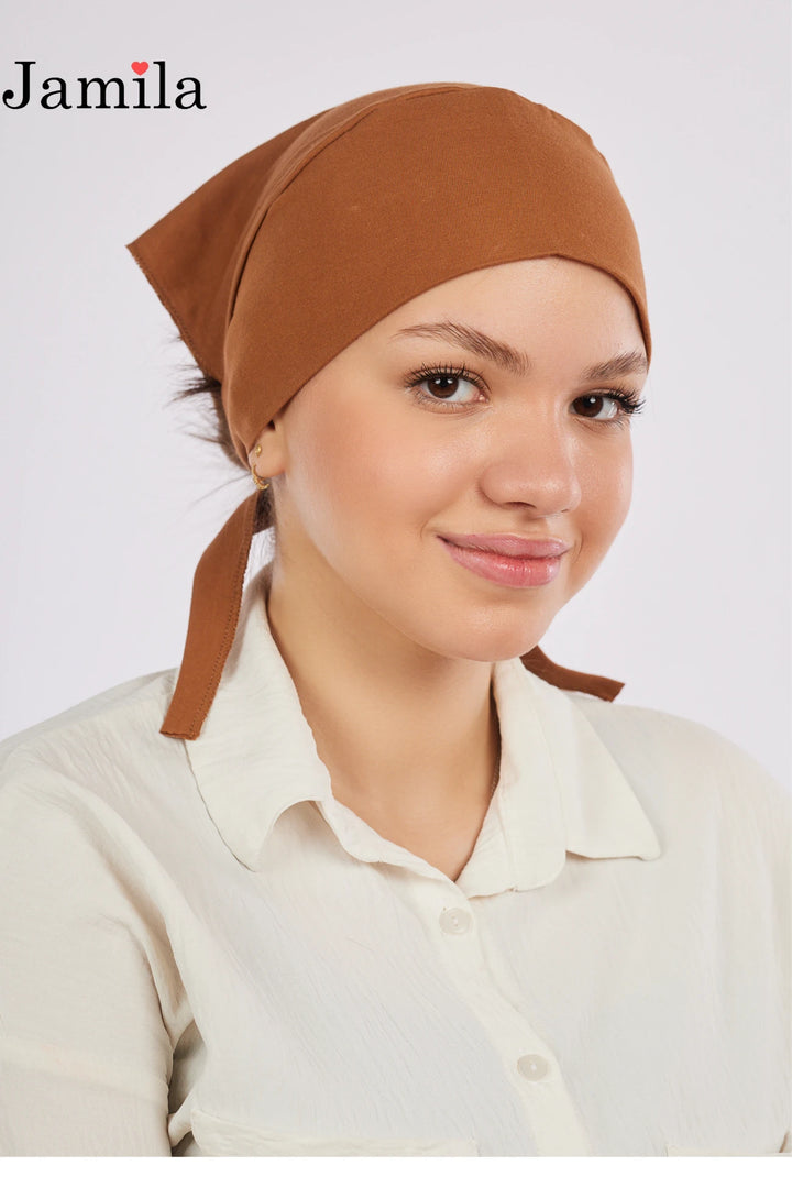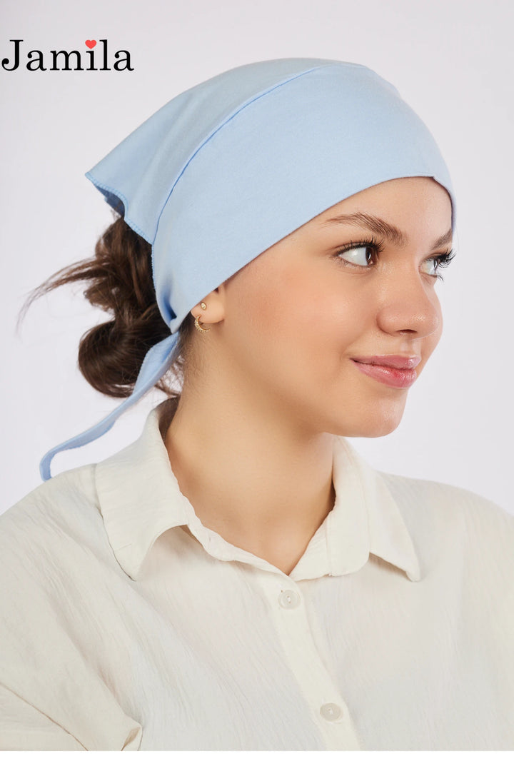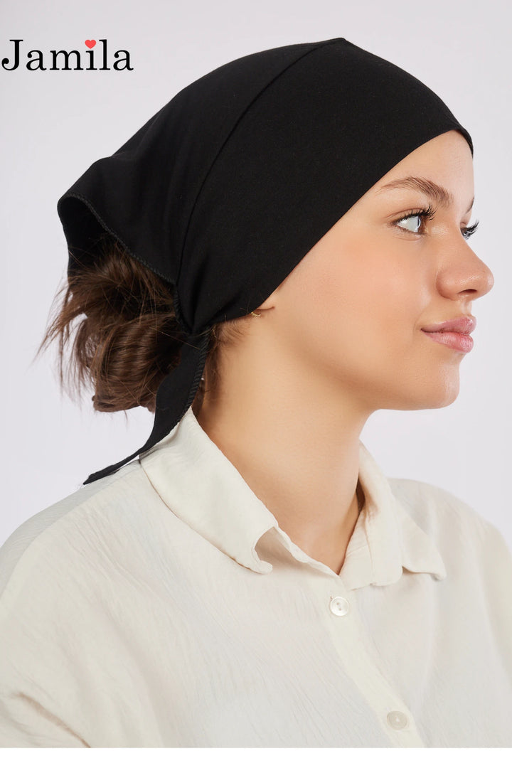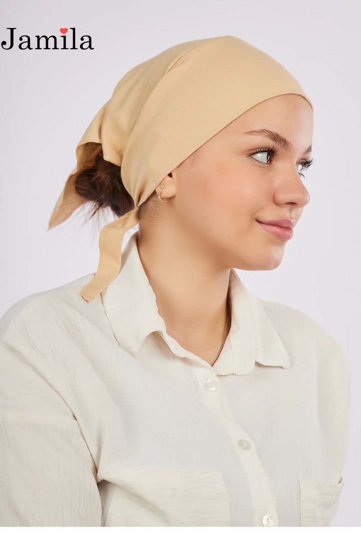 بندانة ماركة Jamila برباط ذو نهاية مثلثة لها طرفين للربط حول الرأس. هذه البندانة لا تعطي اي سُمك من الامام عند ارتداءها. مصنوعة من القطن المصري 100%.