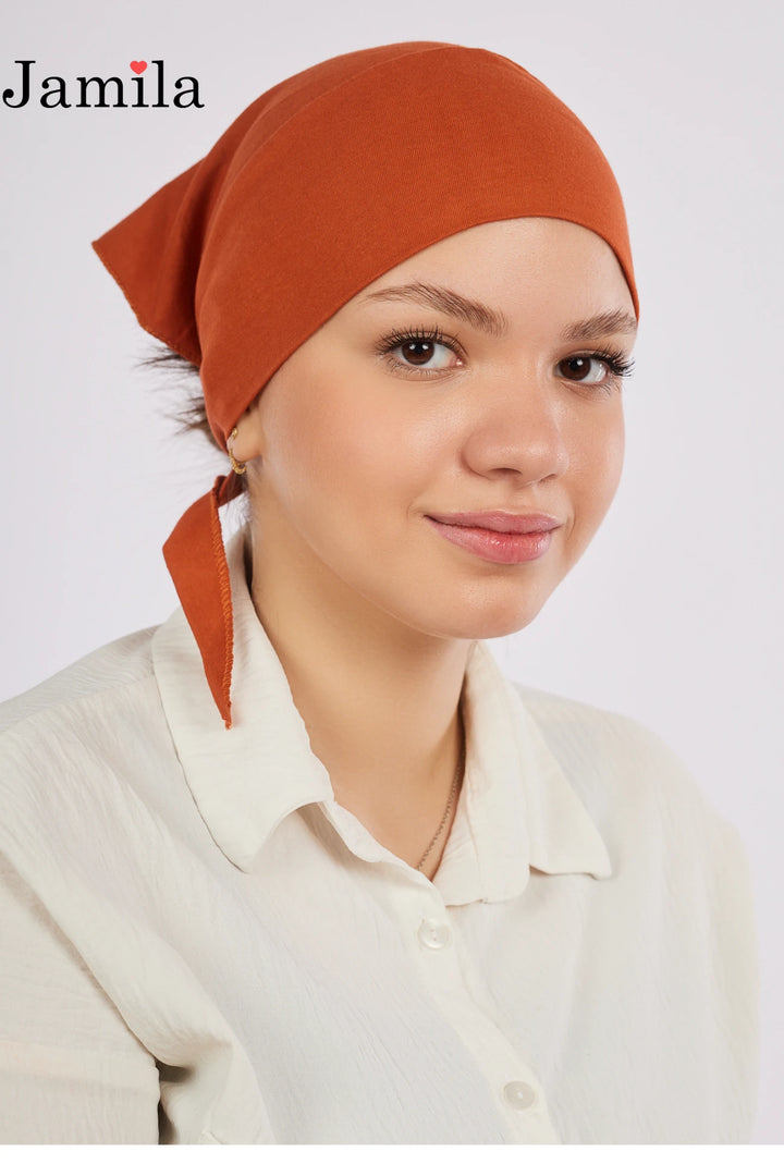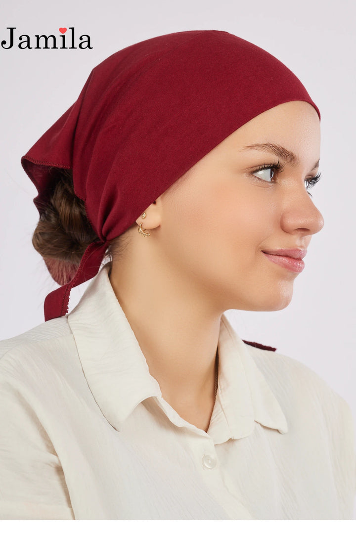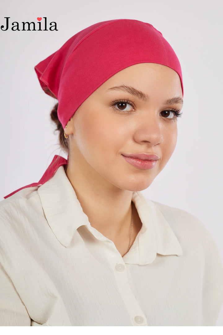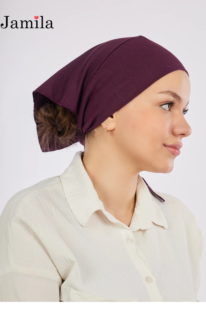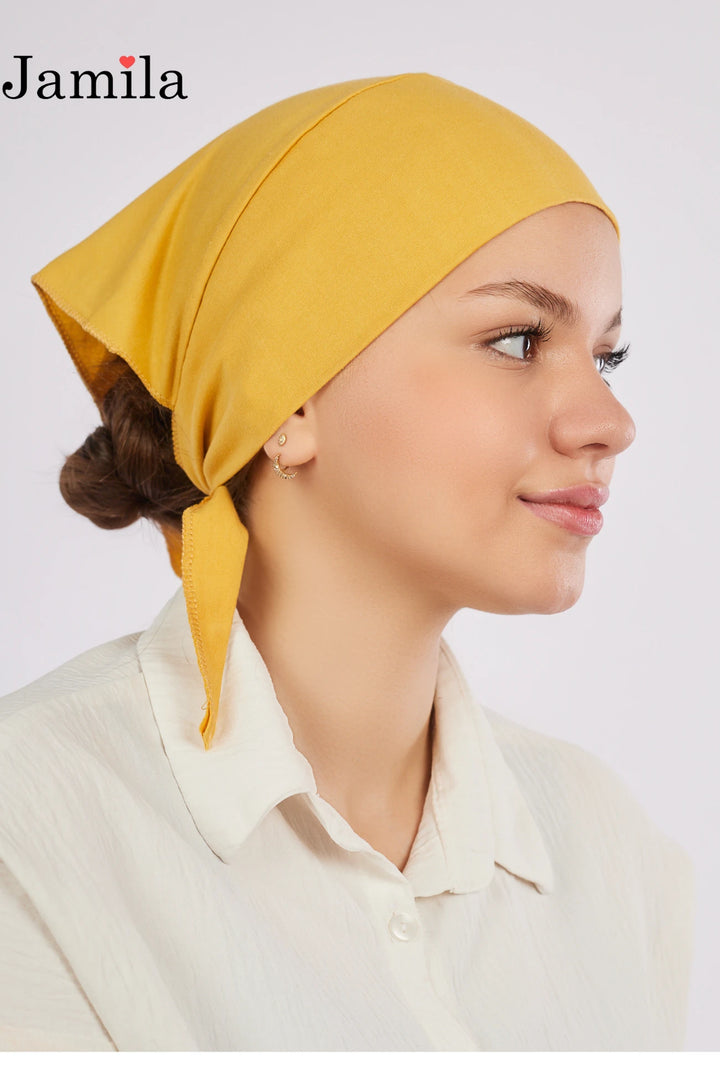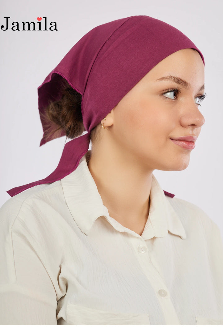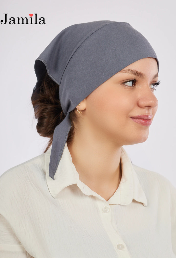 بندانة ماركة Jamila برباط ذو نهاية مثلثة لها طرفين للربط حول الرأس. هذه البندانة لا تعطي اي سُمك من الامام عند ارتداءها. مصنوعة من القطن المصري 100%.