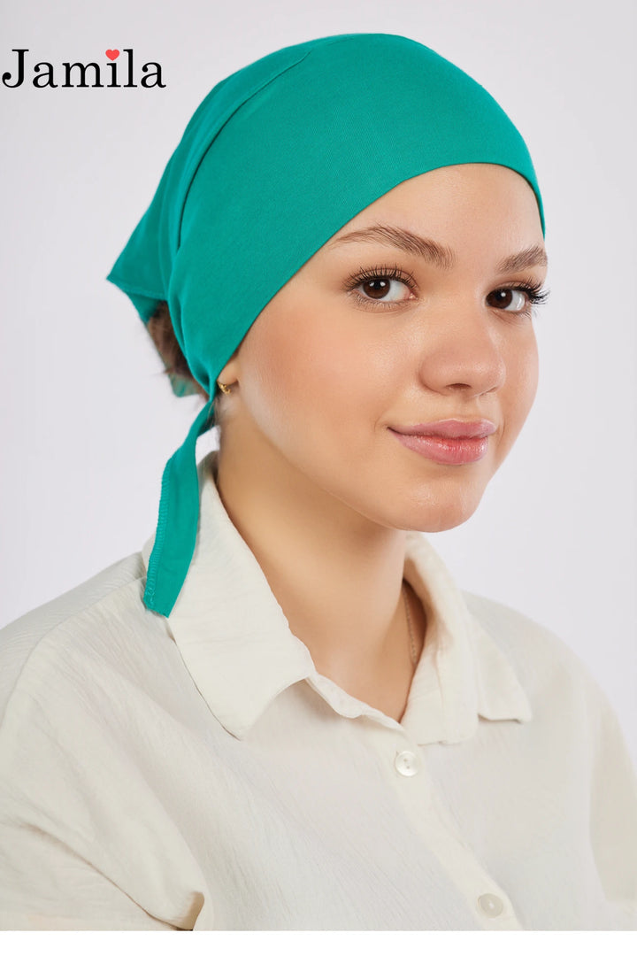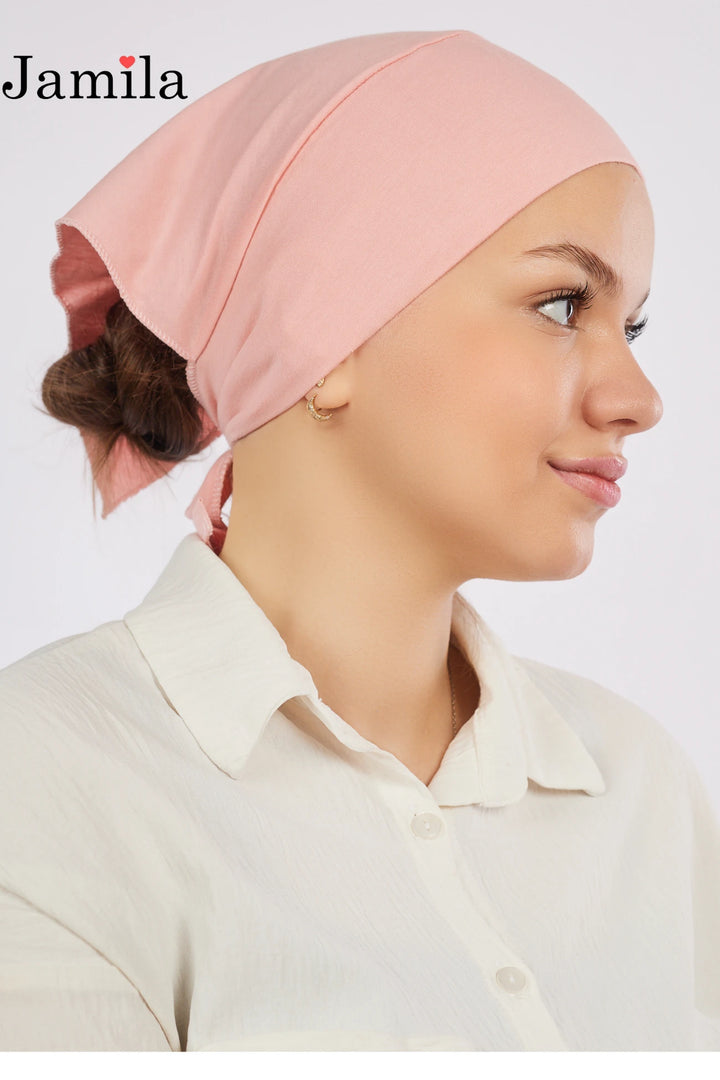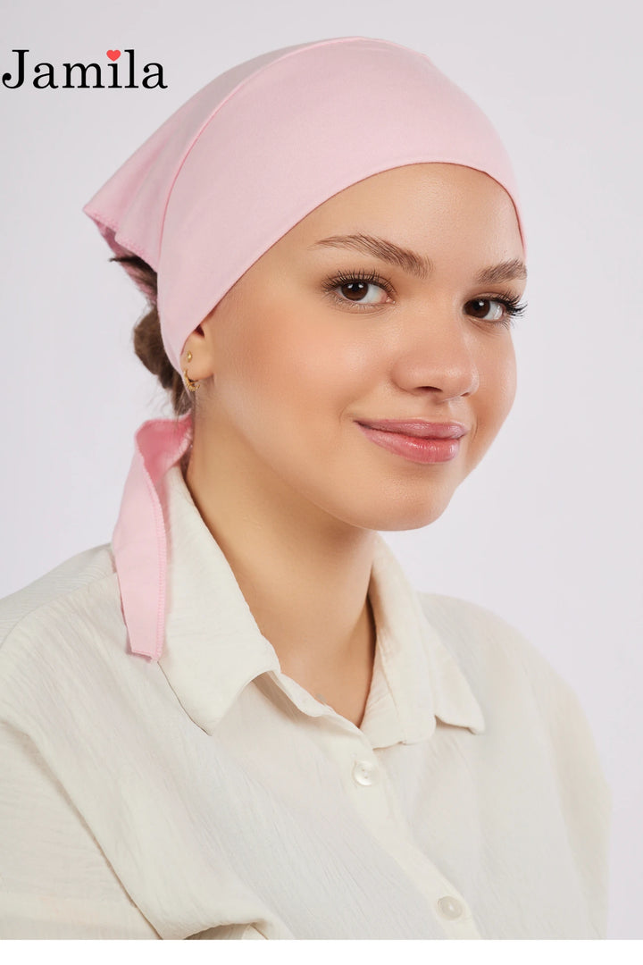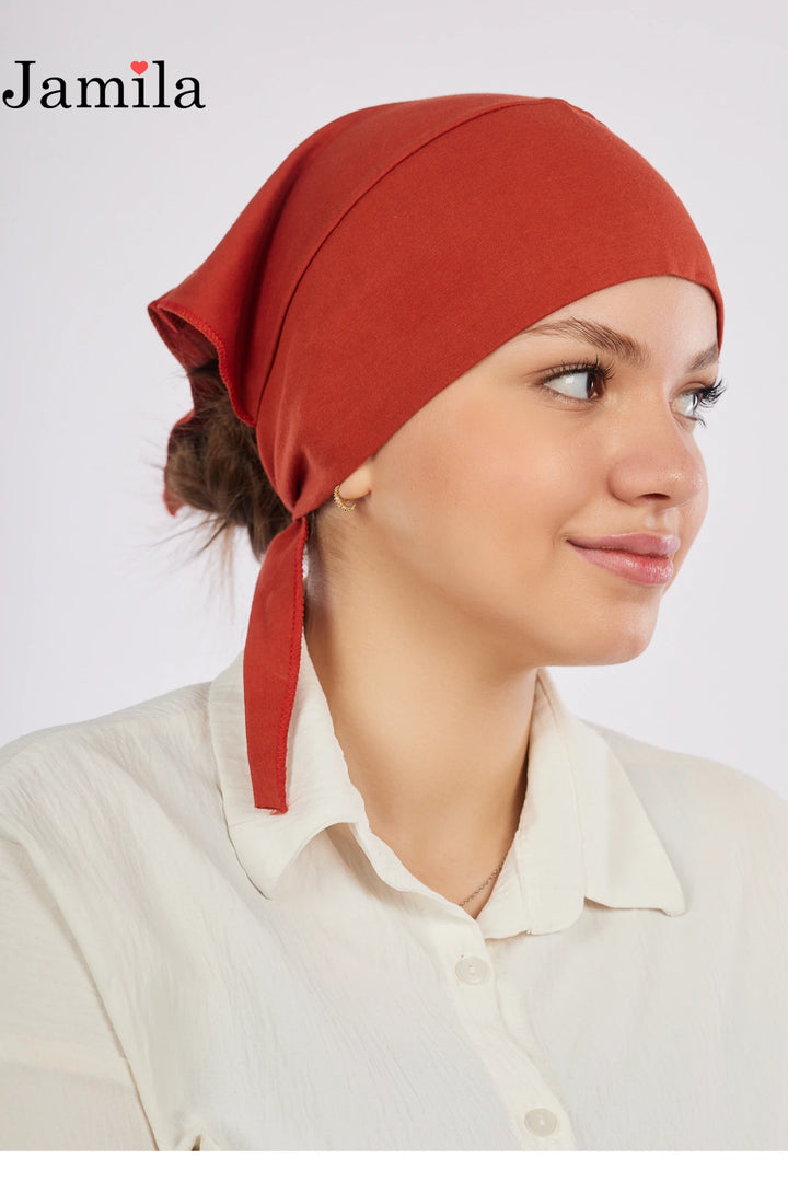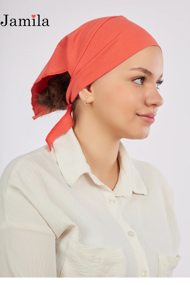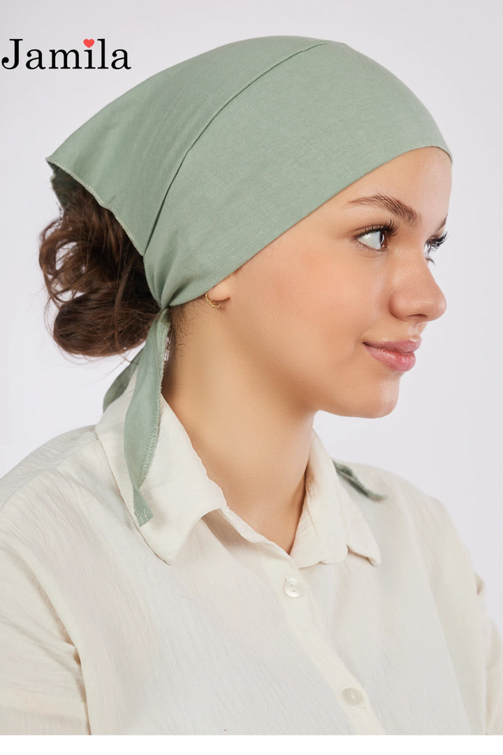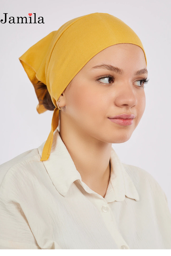 بندانة ماركة Jamila برباط ذو نهاية مثلثة لها طرفين للربط حول الرأس. هذه البندانة لا تعطي اي سُمك من الامام عند ارتداءها. مصنوعة من القطن المصري 100%.
