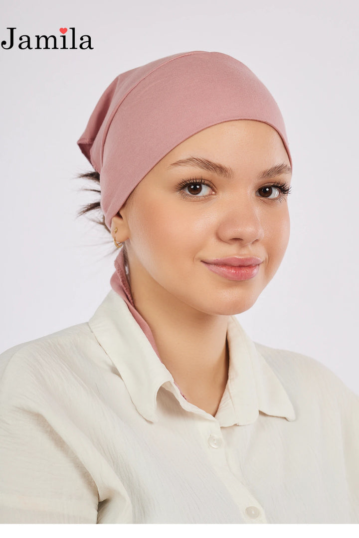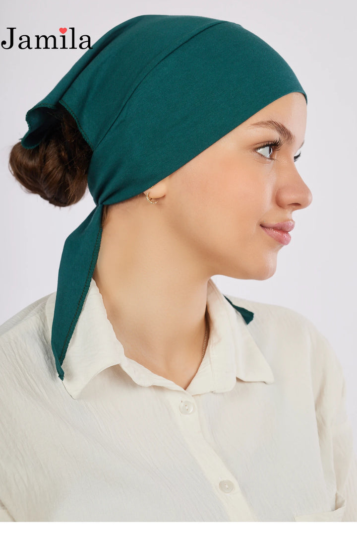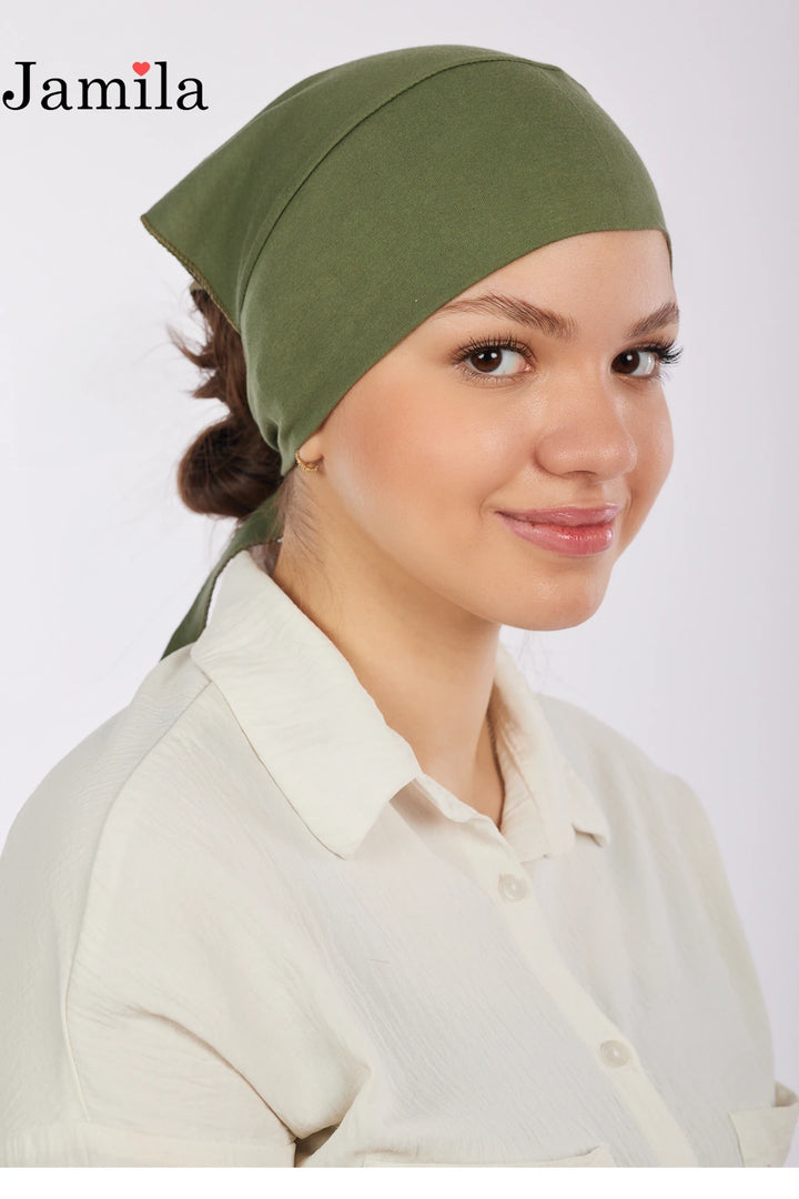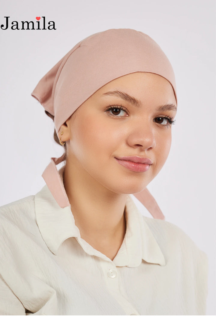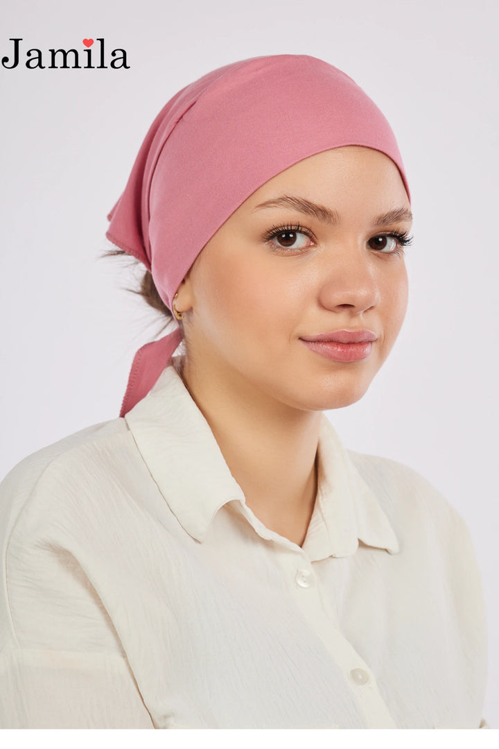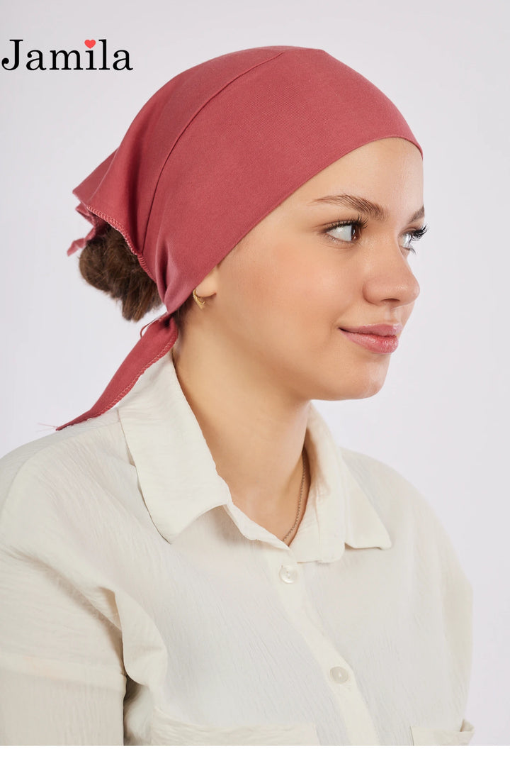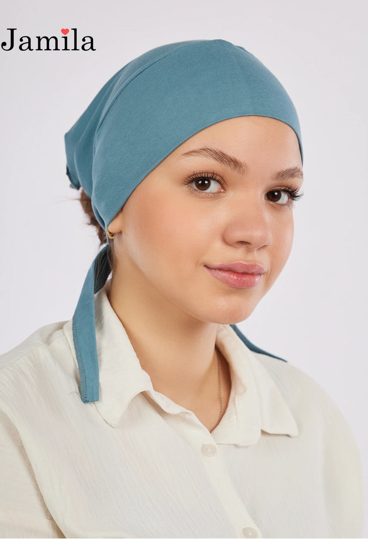 بندانة ماركة Jamila برباط ذو نهاية مثلثة لها طرفين للربط حول الرأس. هذه البندانة لا تعطي اي سُمك من الامام عند ارتداءها. مصنوعة من القطن المصري 100%.