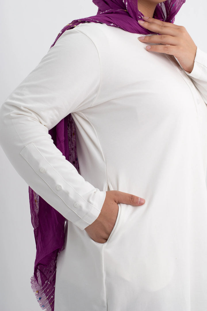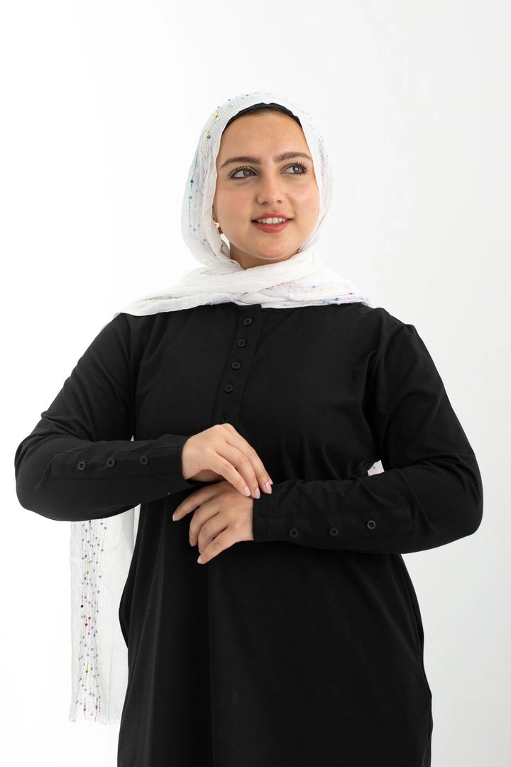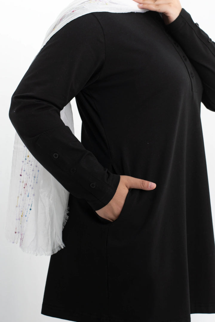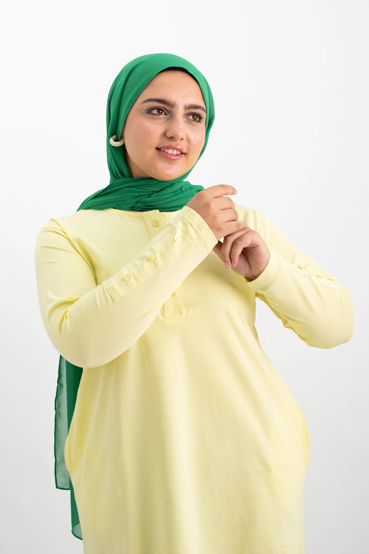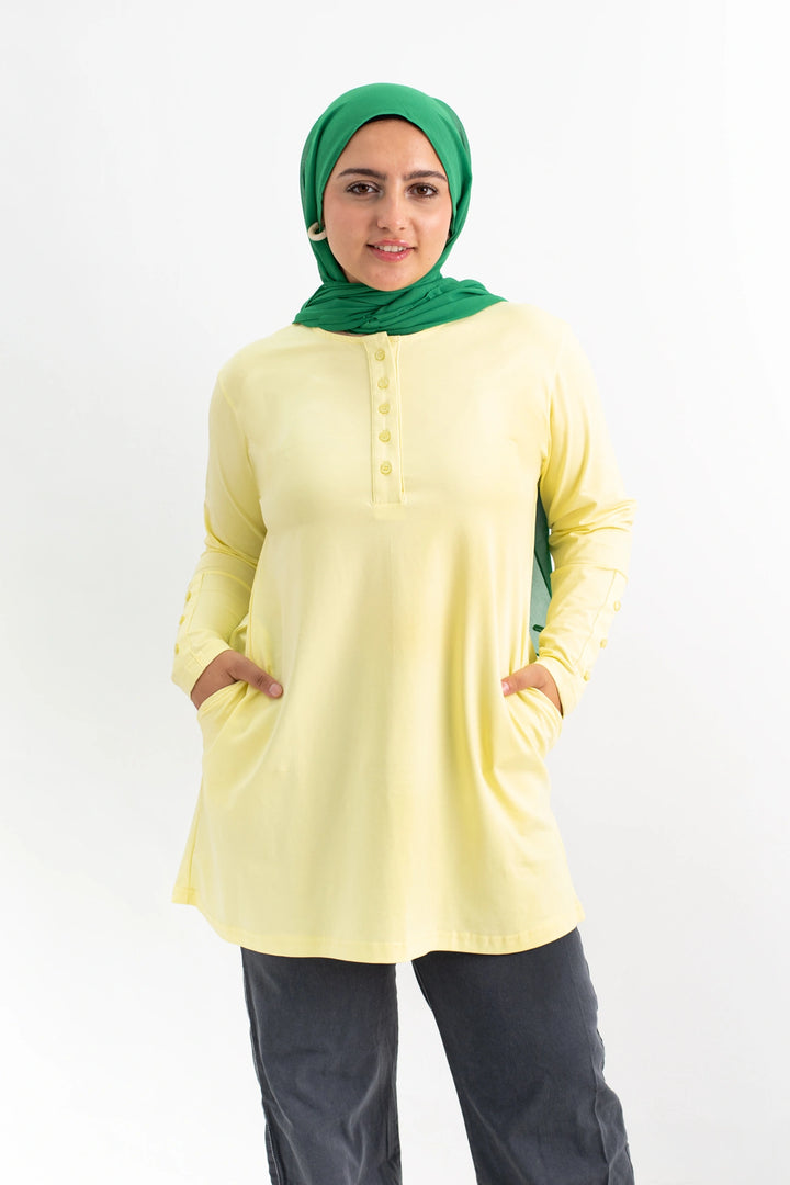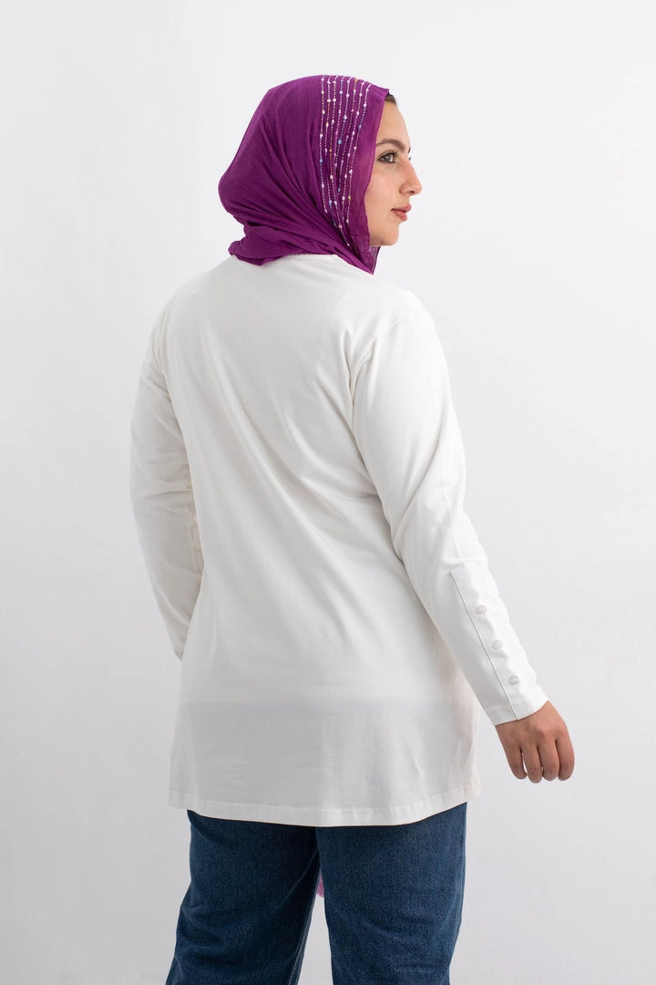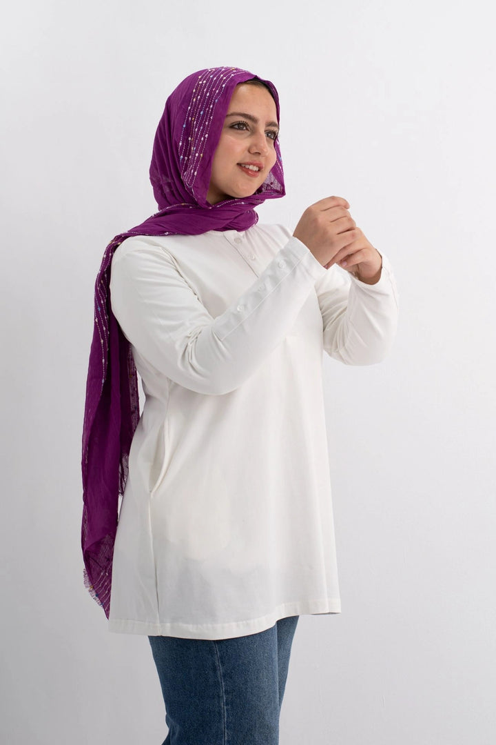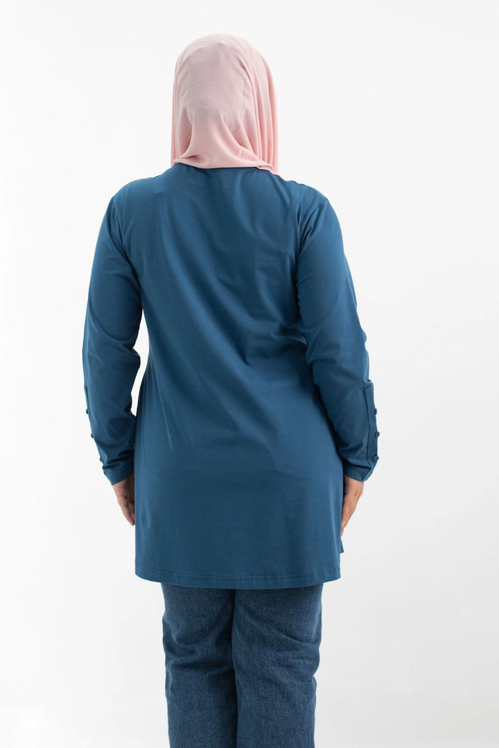 تي شيرت 100% قطن برقبه دائريه وزراير وفي جايبين علي الجوانب وفي نهايه الكم زراير لإضفاء لمسه جماليه
