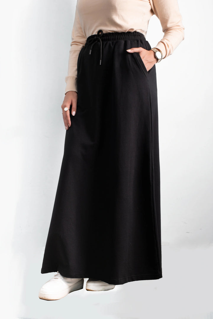 جيب طويله قصة واسعه سمر ميلتون 95% قطن 5% ليكرا بها جيبين والوسط كردون للتحكم في التضييق والتوسيع