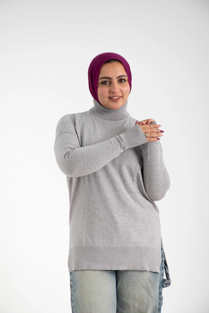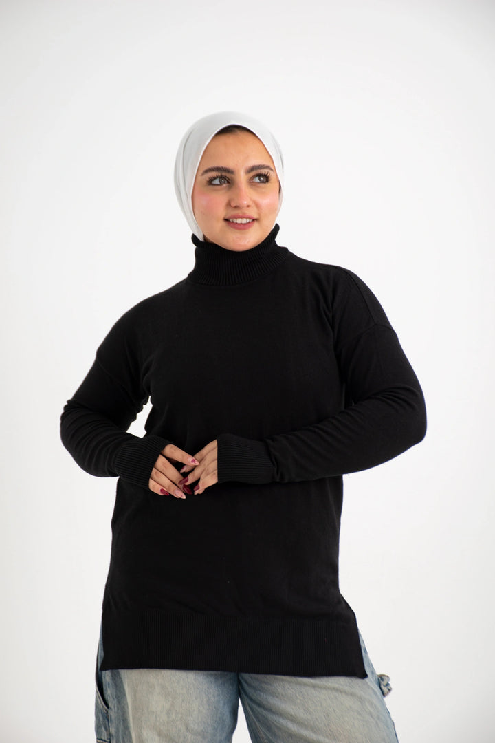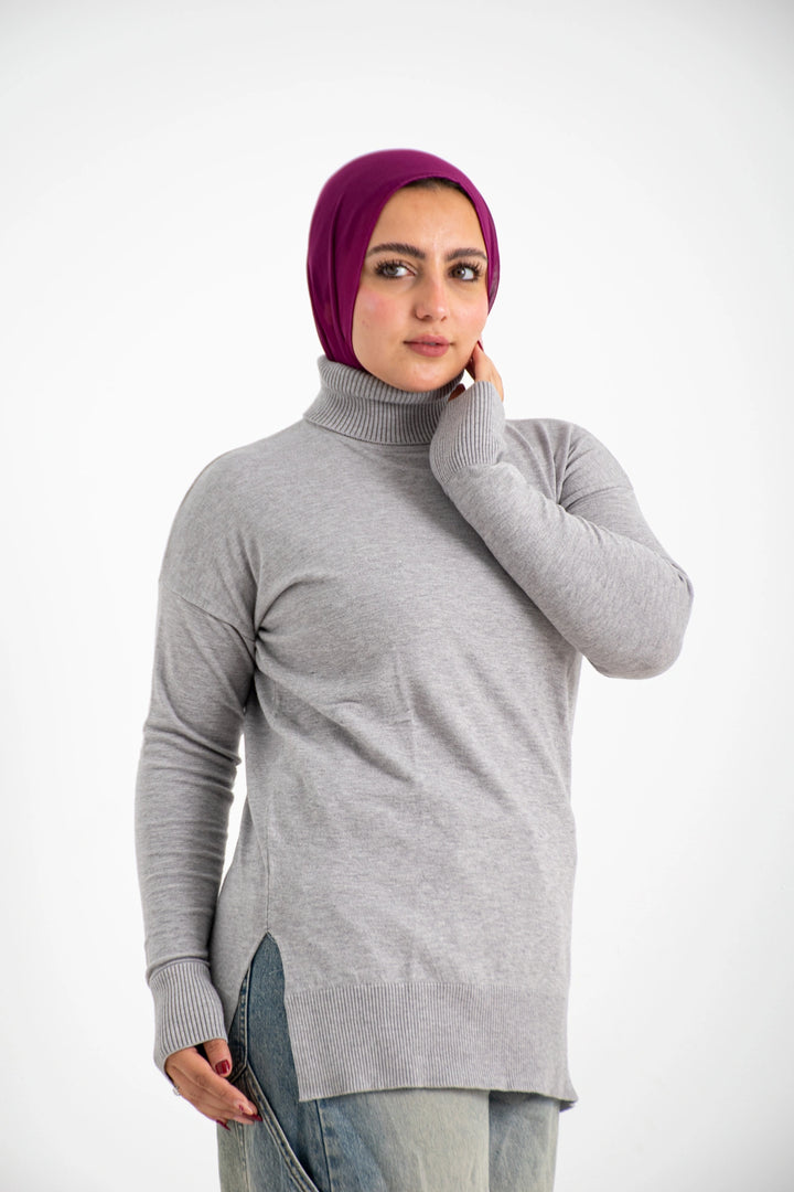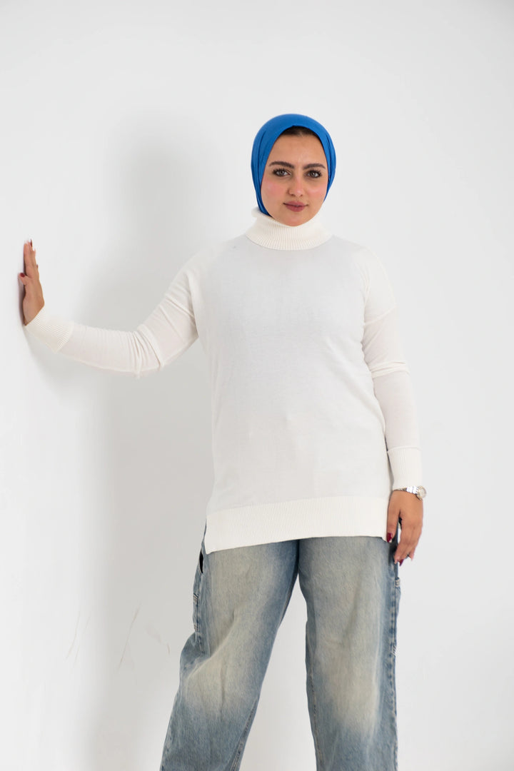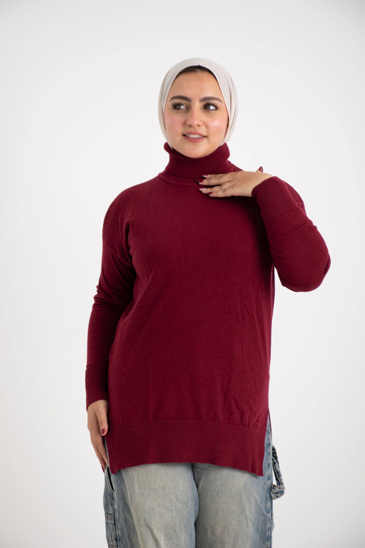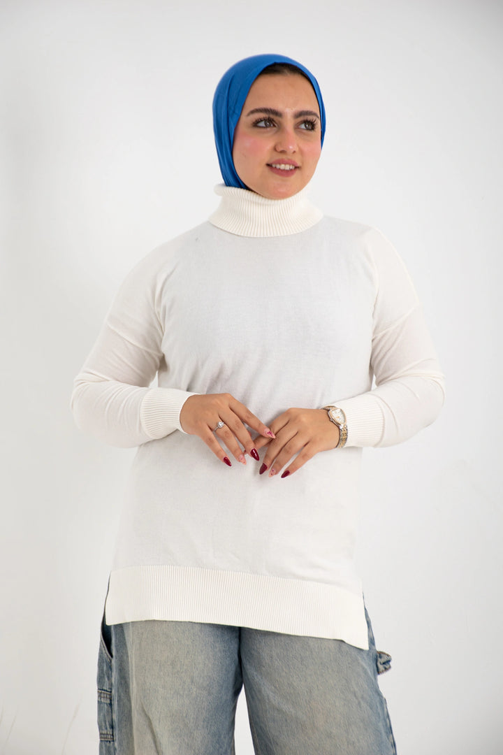 هاي كول طويل من التريكو الصوف الناعم كاجوال متعدد الاستخدامات كتف ساقط وبه فاتحين من الجانب لإعطاء وسع مناسب في اللبس