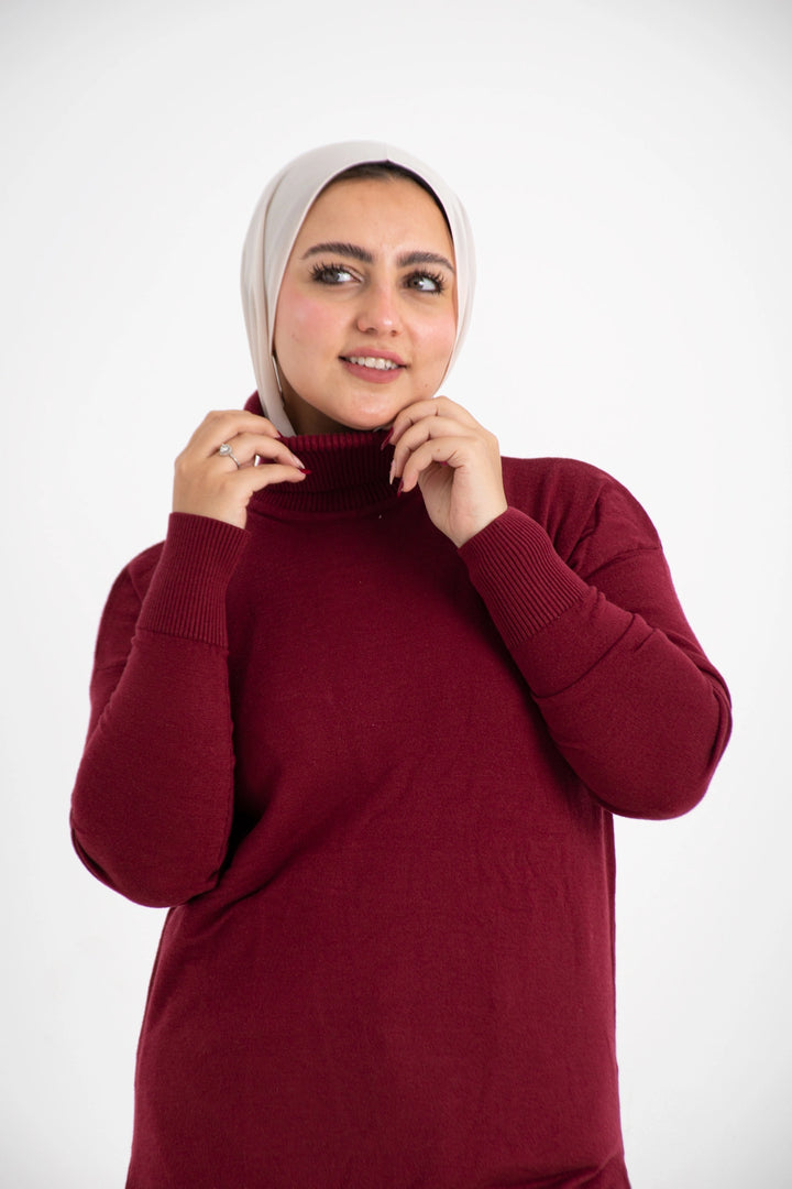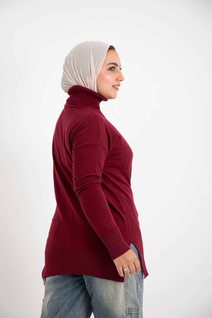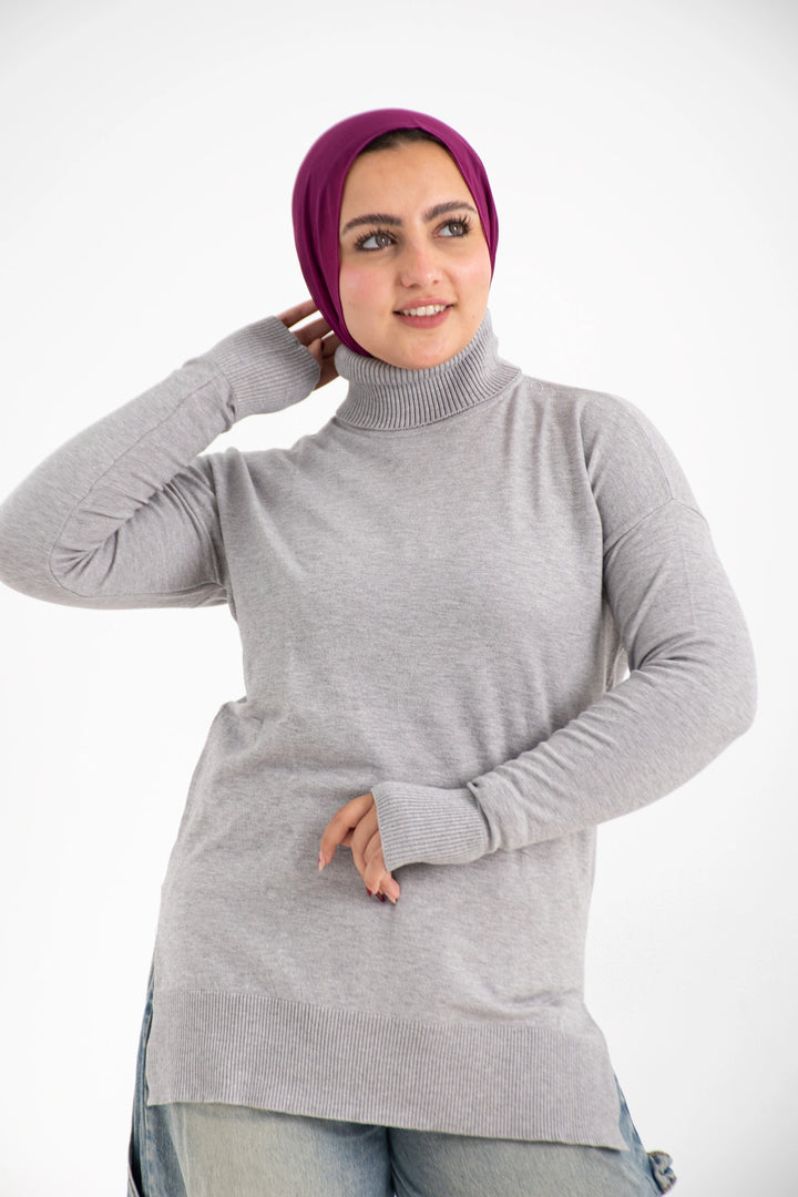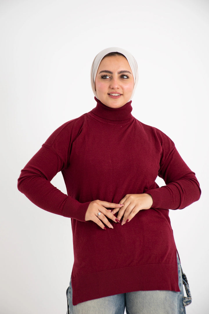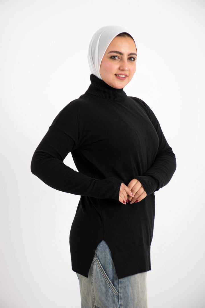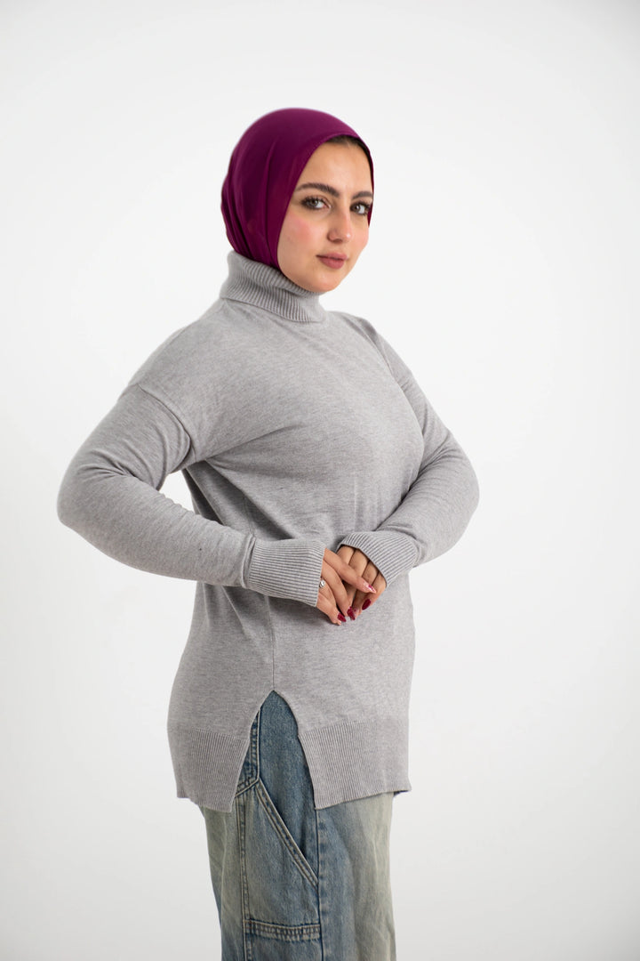 هاي كول طويل من التريكو الصوف الناعم كاجوال متعدد الاستخدامات كتف ساقط وبه فاتحين من الجانب لإعطاء وسع مناسب في اللبس