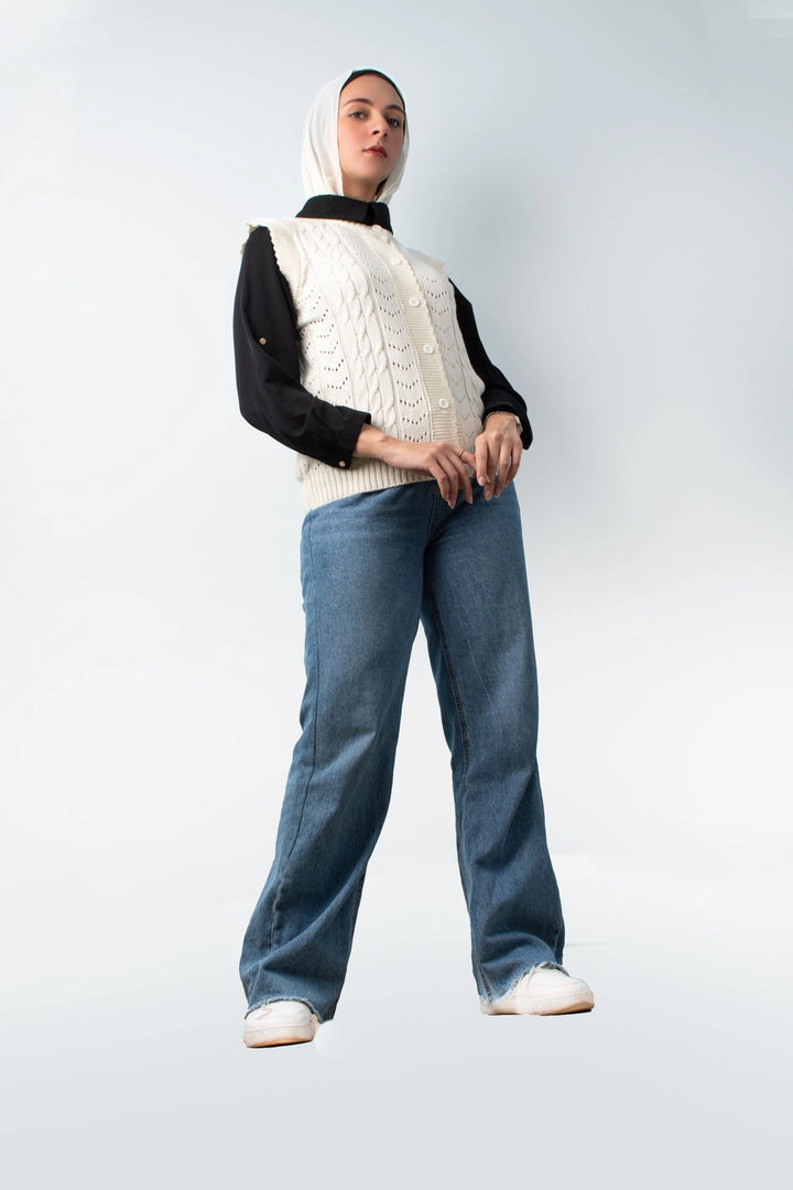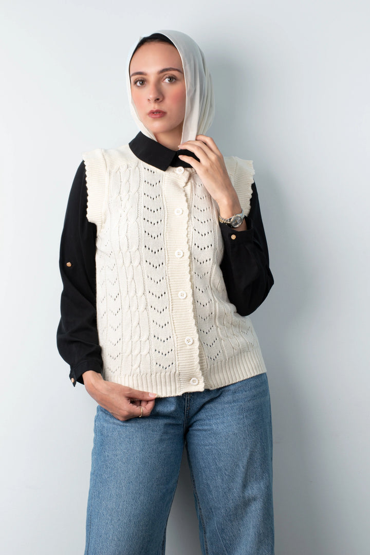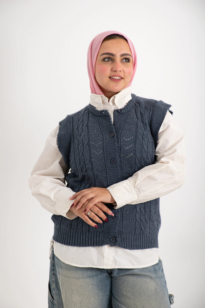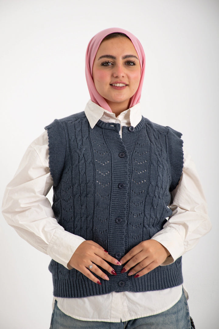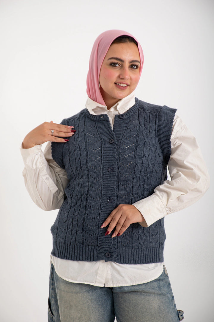ڤيست صوف كات عريض في نهايته زجزاج ومفتوح وبه زراير من نفس اللون