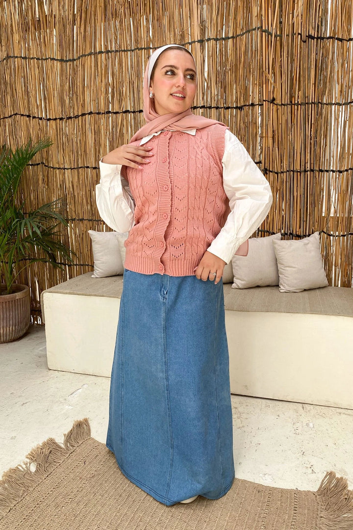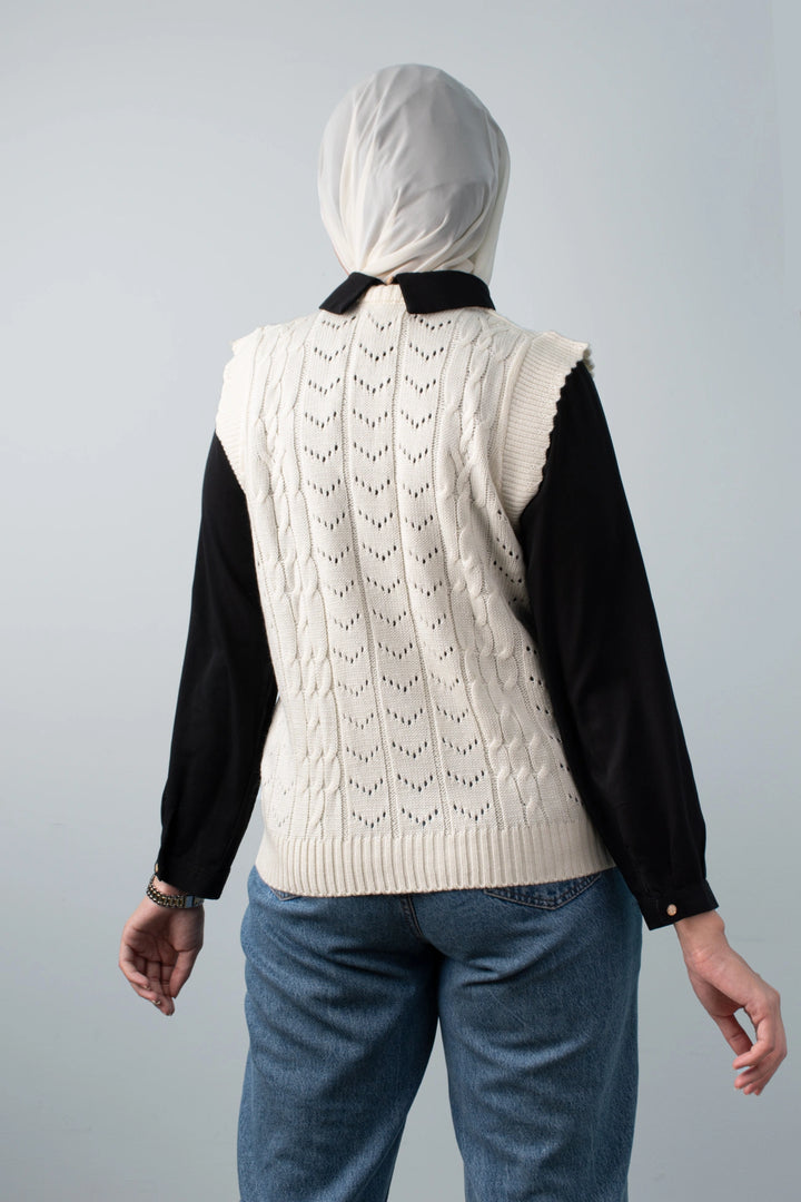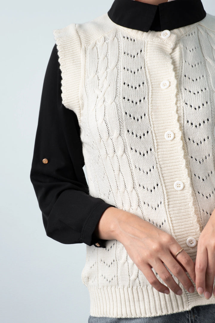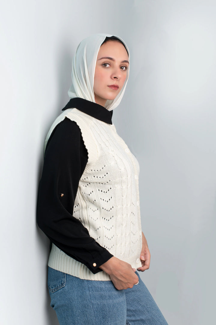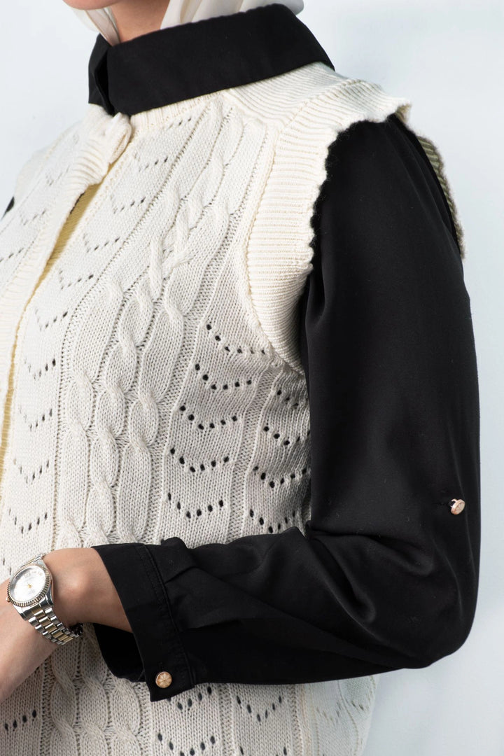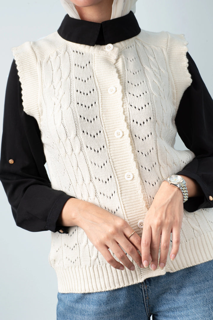 ڤيست صوف كات عريض في نهايته زجزاج ومفتوح وبه زراير من نفس اللون