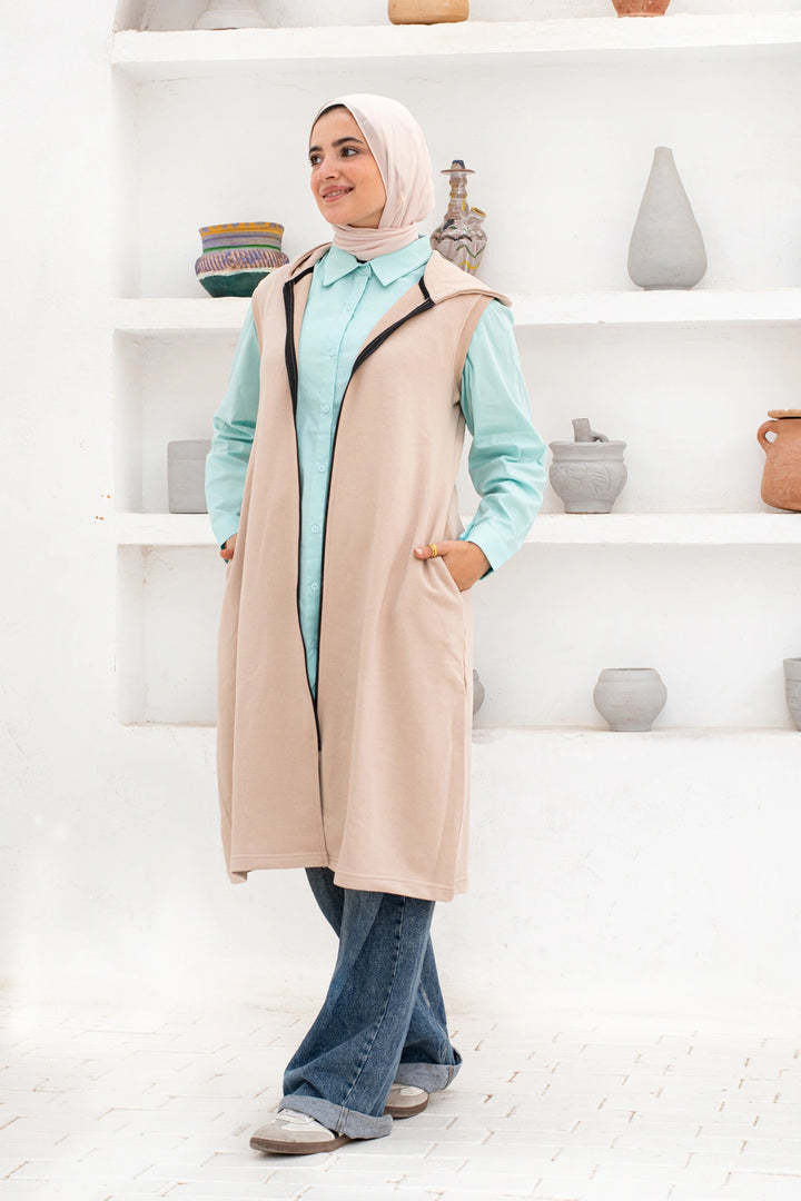 فيست ميلتون طويل به سوسته لسهوله لبسه مفتوح أو مقفول وبه كابي شو مع جيوب في الاجناب يمكن تنسيقه مع ستايلات كتير